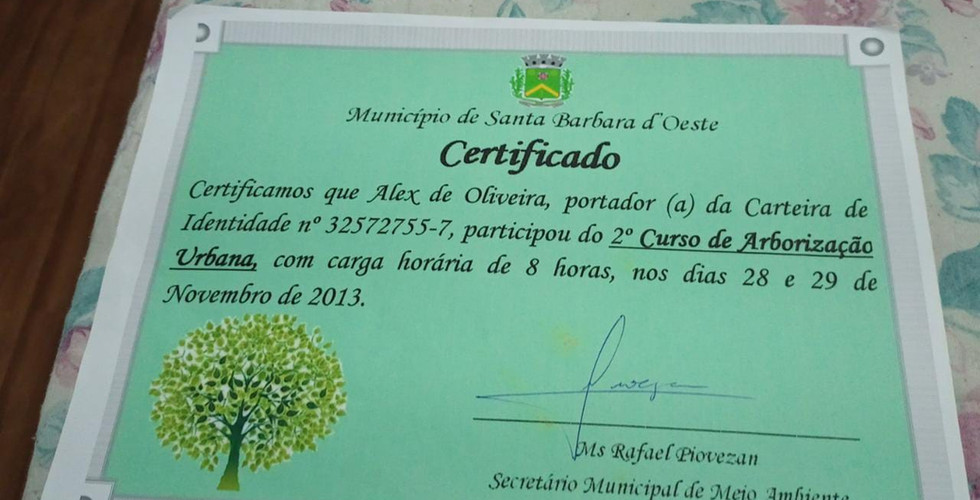 2013- Curso de Arborização Urbana ,pela Prefeitura