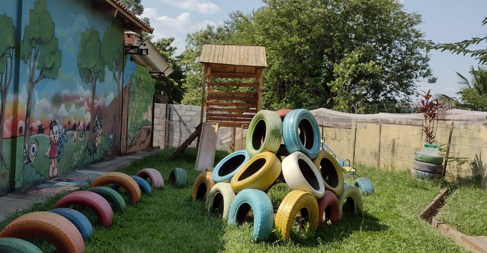 · Nosso espaço kids foi feito com material reciclado (brinquedos feitos com pneus e pallets)